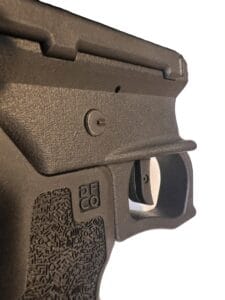 – Flared magazine well lip with visual and tactile reference guides